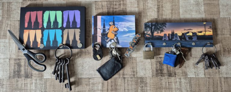 Die rechteckigen, magnetischen Schlüsselbretter bieten wir in den folgenden Formaten an: Maxi (30×20 cm mit 4 Magneten), Groß (20×15 cm mit 3 Magneten) und Panorama (30×11 cm mit 5 Magneten). Für den sicheren Halt verwenden wir kraftvolle Nyodym Magnete.
